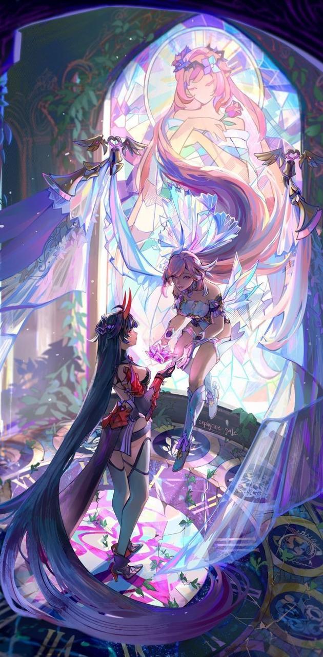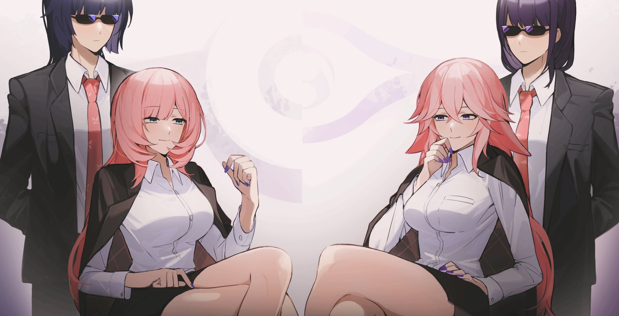 yande.re 1040848 sample angel benghuai_xueyuan business_suit chibi elysia_(honkai_impact) honkai_impact pantyhose raiden_mei sword wallpaper wings yolanda.jpg